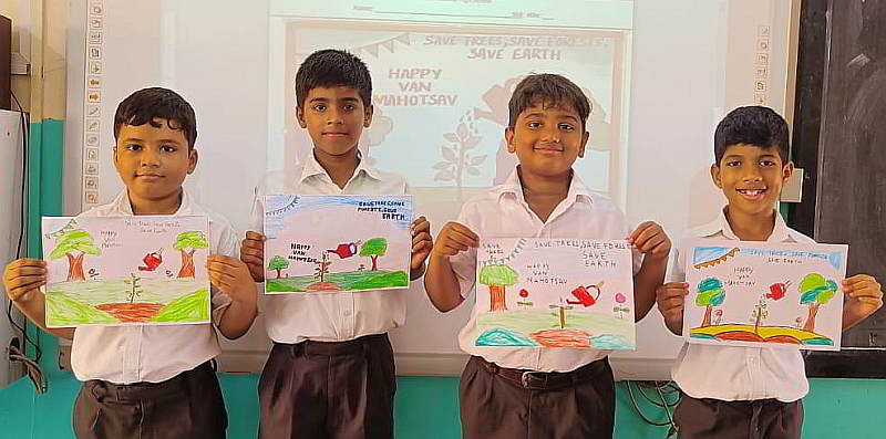 An art activity based on the festival was also organised in the classrooms. A boy from each class who did the activity well was given a plant sapling. Teachers in-charge Tr. Priya Divecha, Tr. Bindu Corriea, Tr. Trupti Gujar, and Tr. Risa Gonsalves
