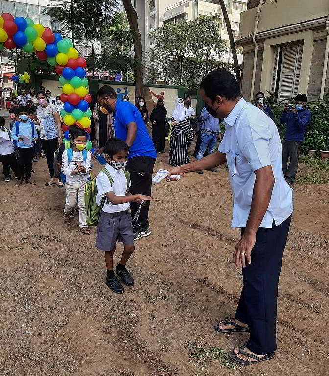 The primary section of St. Stanislaus High School reopened on 15th December, 2021 after a long break due to Covid-19. The principal Sr. Arockia, headmistress Tr. Jennifer Pereira and Fr. Assis welcomed the boys and said a prayer of protection. The headmistress gave some instructions to the boys and their parents. The boys were escorted by their class teachers to their respective classes amidst colourful balloons, music and teachers holding pom poms. The love and affection that the boys received could be seen on their happy faces. The boys were very happy to be back in school.